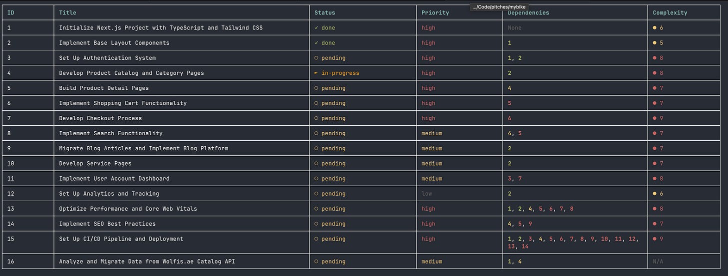 Taskmaster requires a Product Requirements Document (PRD) to create its initial tasks. SO, how do I write that? In Windsurf, I prompted:migrating https://wolfis.ae/ to https://mybike.ae