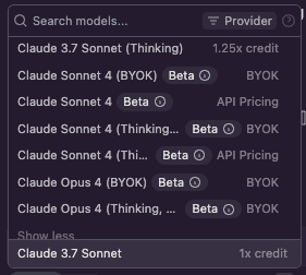 BYOK (Bring Your Own Key). It’s a direct result of the OpenAI acquisition that pushed WindSurf to introduce this. As a result, I have since last month become a hybrid IDE user (Cursor for Claude 4 Sonnet, Windsurf for the rest… News flash, Cursor just changed their pricing model).