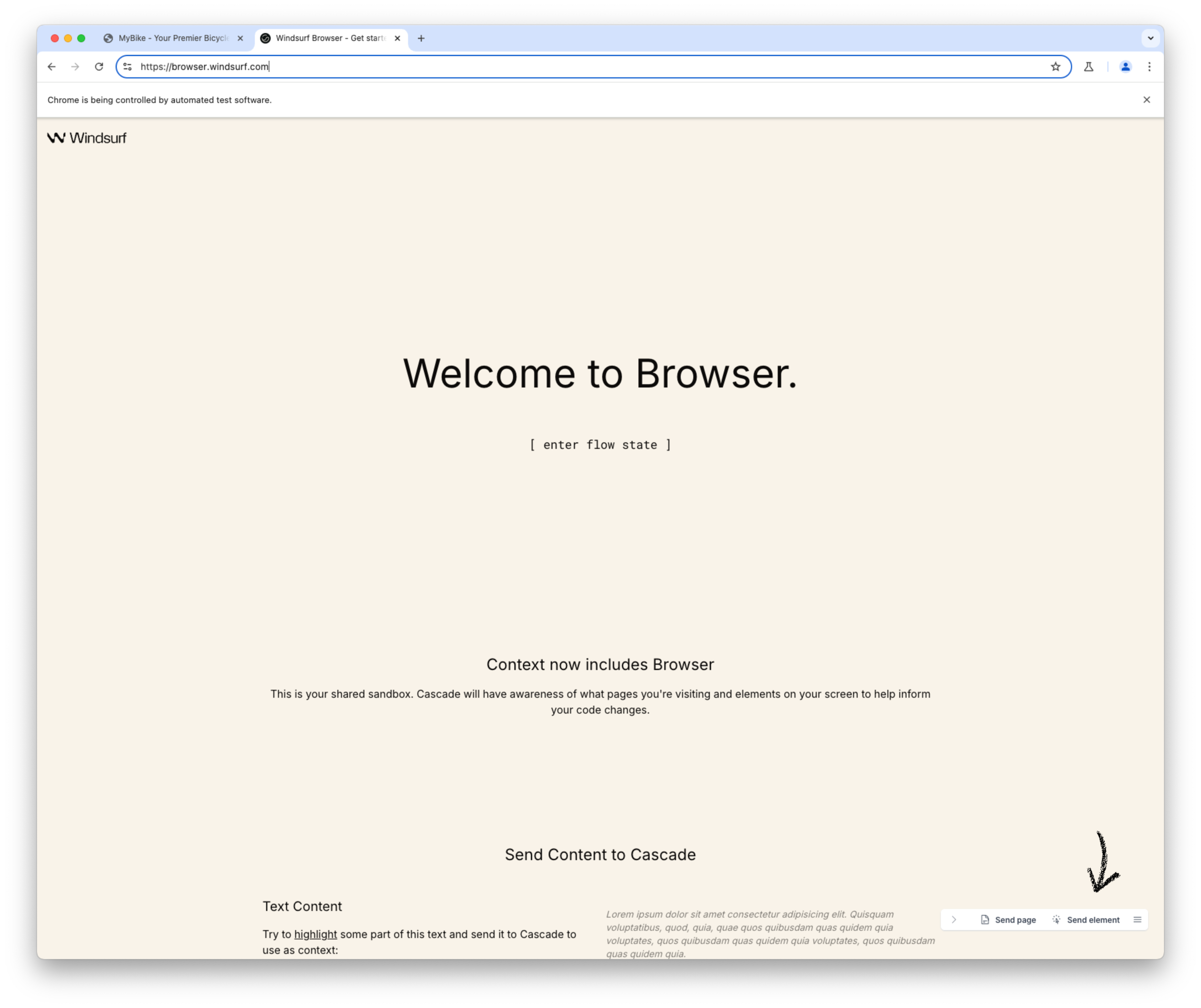 Okay, it appears to be a standard Chromium browser. That's because it includes the windsurf-debugging tool, which provides access to the browser's DOM. Windsurf takes advantage of the Chrome DevTools Protocol (CDP).