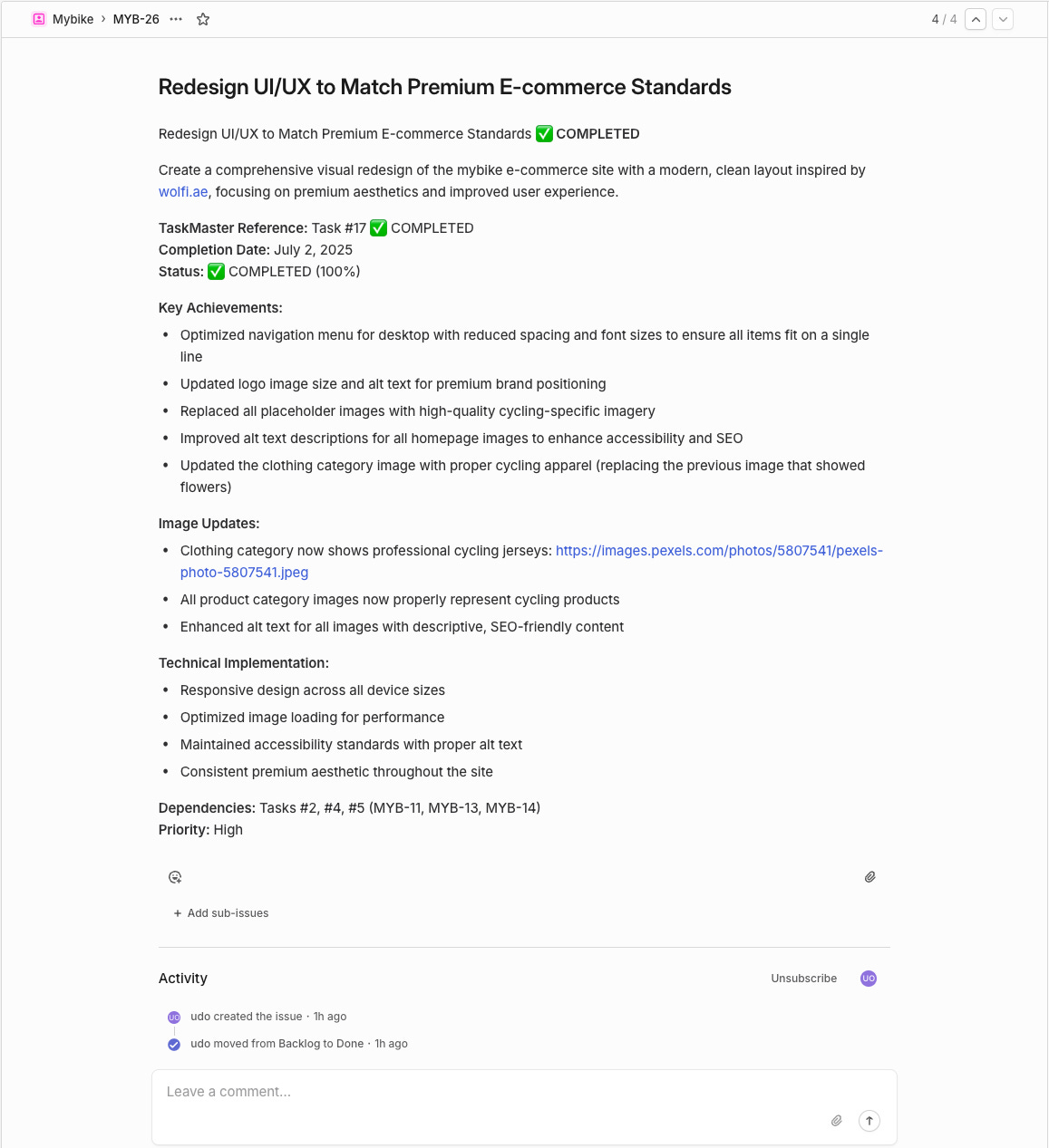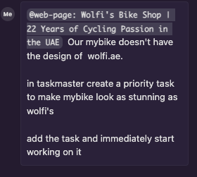 I used this functionality to analyse wolfis.ae properly. Navigate to their site, inspect the key elements, and send visual references directly to Cascade. I used this method to create Task #17, which involved redesigning the UX to resemble Wolfi’s.